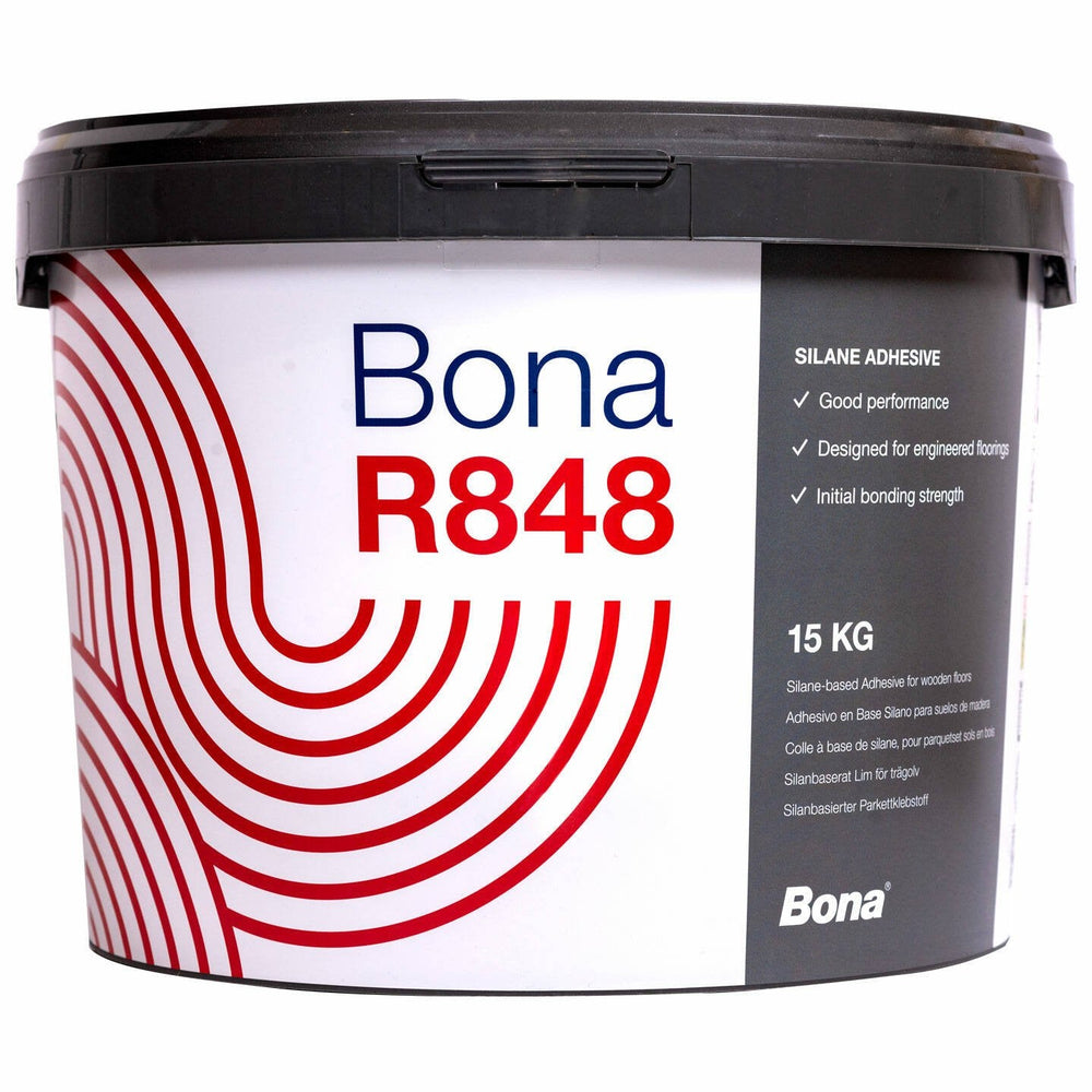 Bona R848 is an elastic, 1-component silane wood floor adhesive. A high performance formulation that is ideal for the installation of engineered wood flooring including engineered parquet flooring. Can also be used for solid boards up to 190mm wide.