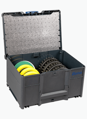 Stackable boxes that can be locked to each other. Each box has an inlay specially designed to protect your tools in the best way. Connects with the Bona Box Trolley for simple and smooth transportation.