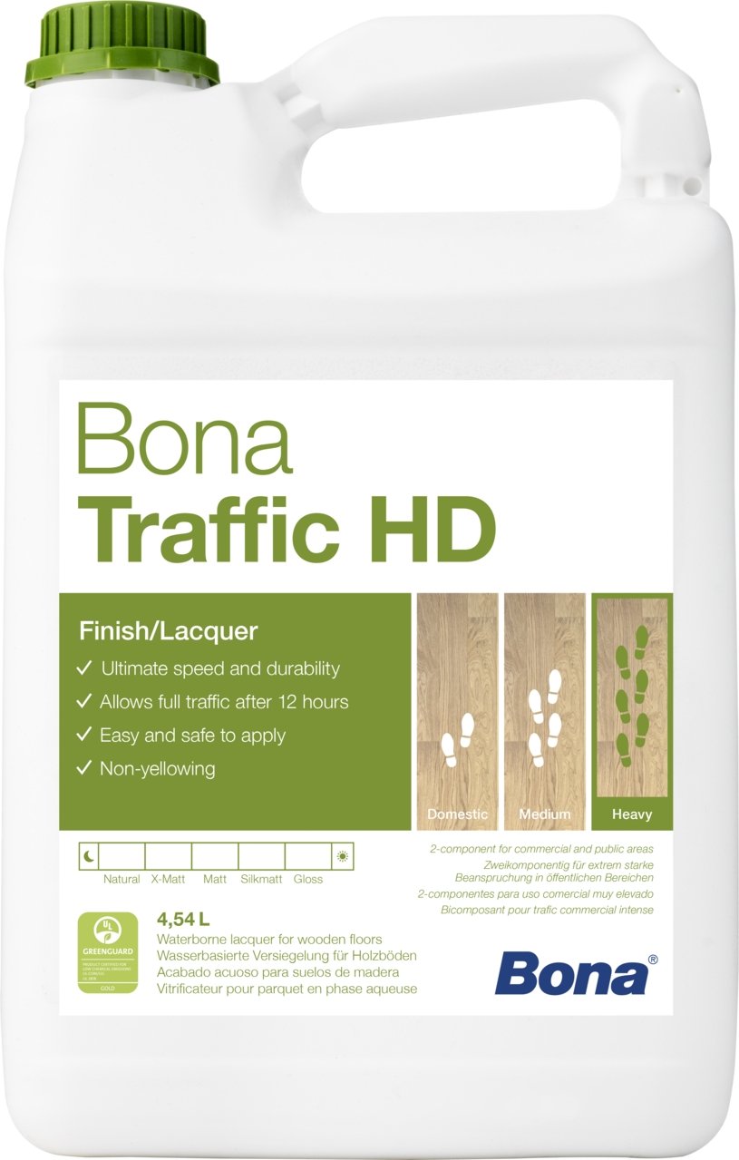 Bona Traffic HD 5L (with hardener). A lacquer offering ultimate durability and an extremely fast hardness development time - meaning the floor can go back into full use after just 12 hours.