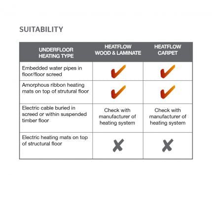 - Suitable for use on most subfloor types including screed and suspended timber floors