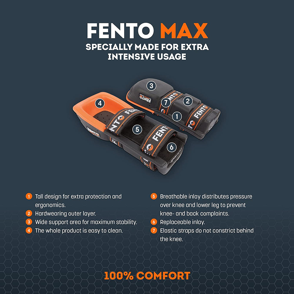 - WEAR ALL DAY AND WORK ALL DAY. Move anywhere without a hassle because these knee pads for men only weigh 450 grams each. The FENTO MAX is a level 1 type 1 knee protector, which means they offer protection to at least 100 (+/-5) N of penetration force.