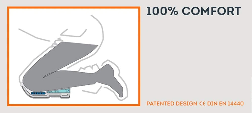 - IMPRESSIVE ERGONOMIC DESIGN. Each product is designed to ensure the correct distribution of pressure across the lower leg to prevent knee and back pain. It is fastened to the shin with an elastic strap of 5cm wide for support and comfort. The elastic strap is positioned to make sure they do not constrict behind the knee.