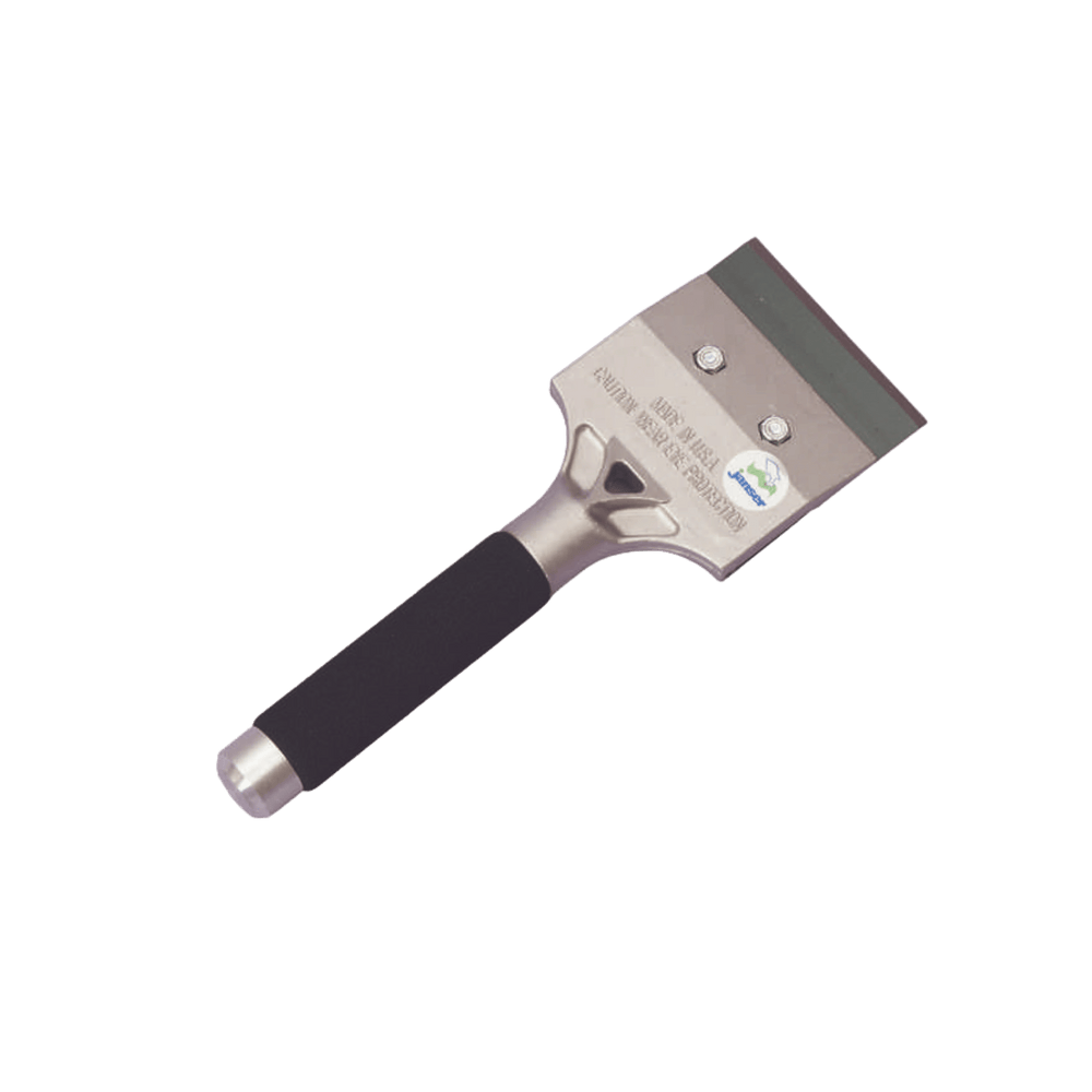 Robust floor scraper , Featuring die-cast aluminium scraping head for maximum blade rigidity and heavy steel handle with comfortable nonslip grips. Steel metal handle allowing for striking with a mallet or hammer to remove tougher materials such as PVC flooring tiles, tiles and hardened or dried concrete