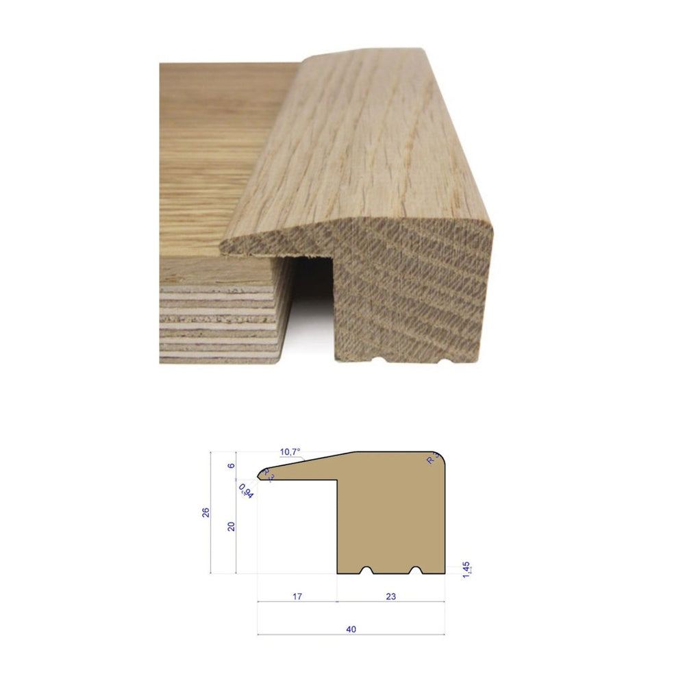 Solid oak threshold commonly known as end section or L-section. Available with a 7mm, 15mm and 20mm rebate. Popular uses include to go against patio doors, UPVC doors and to edge coir matting.