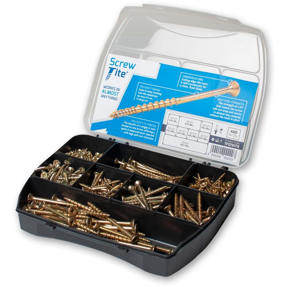 No need to waste time hunting for the right screw, it’s right here in this handy organiser case. The case contains 460 high performance Screw-Tite pozi driv screws in the most commonly used sizes.