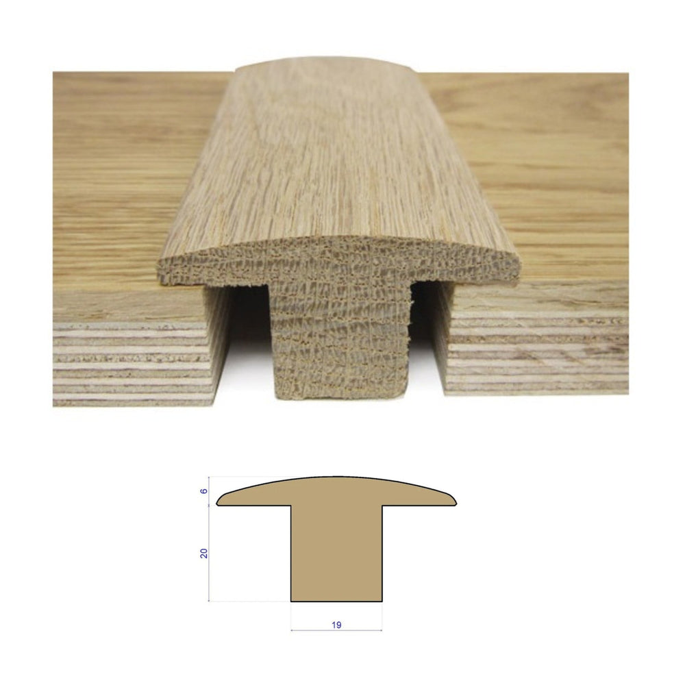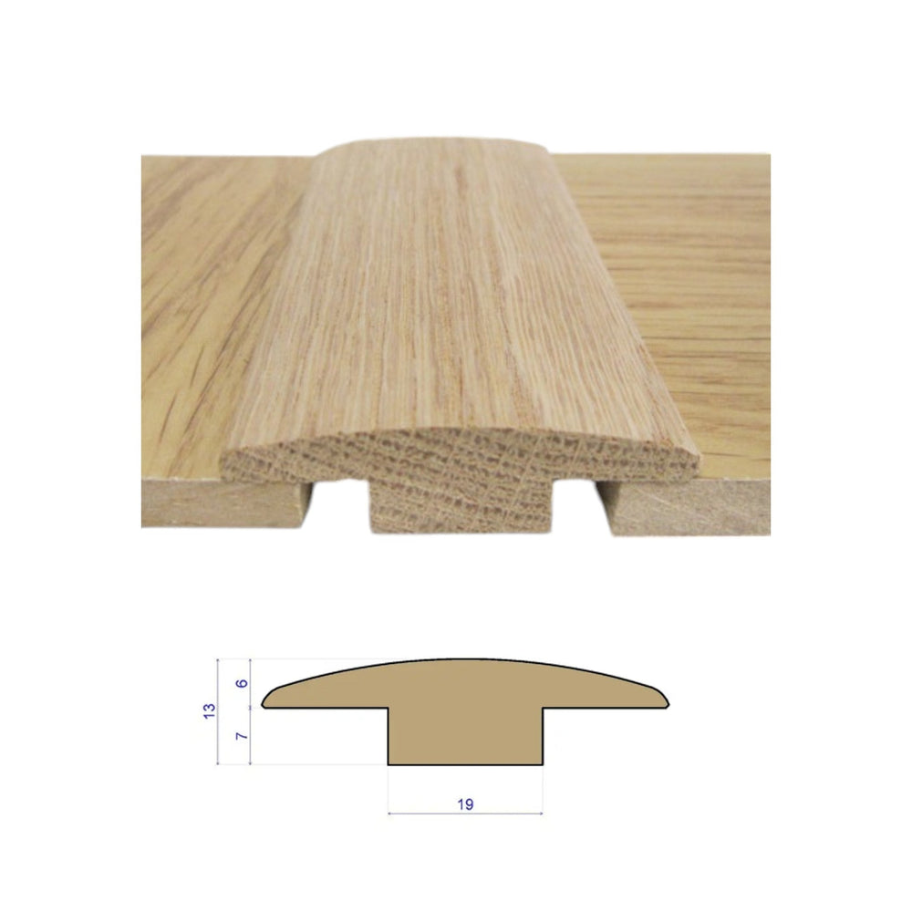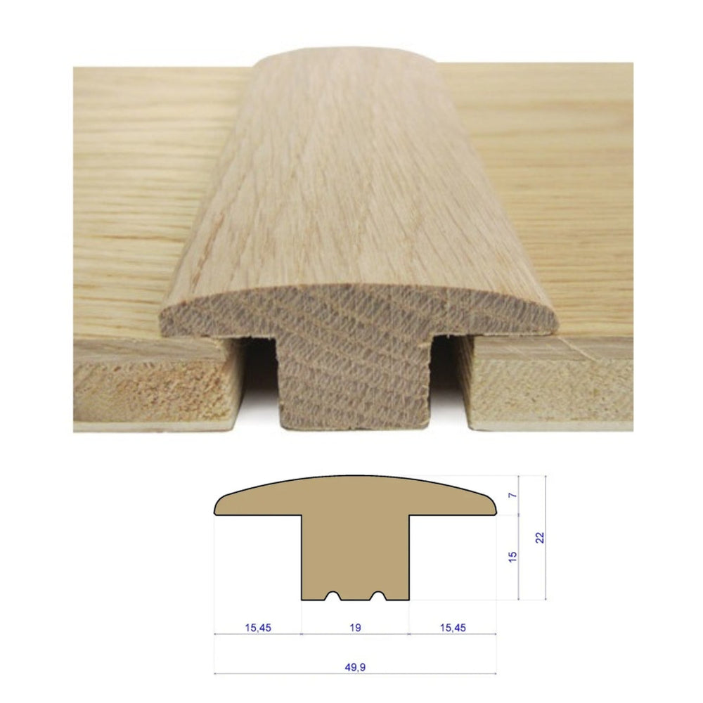 This extra wide solid oak flooring profile is ideal for a flat transition between two floors of the same height. It can be used to link wood to wood, wood to tile or wood to carpet.