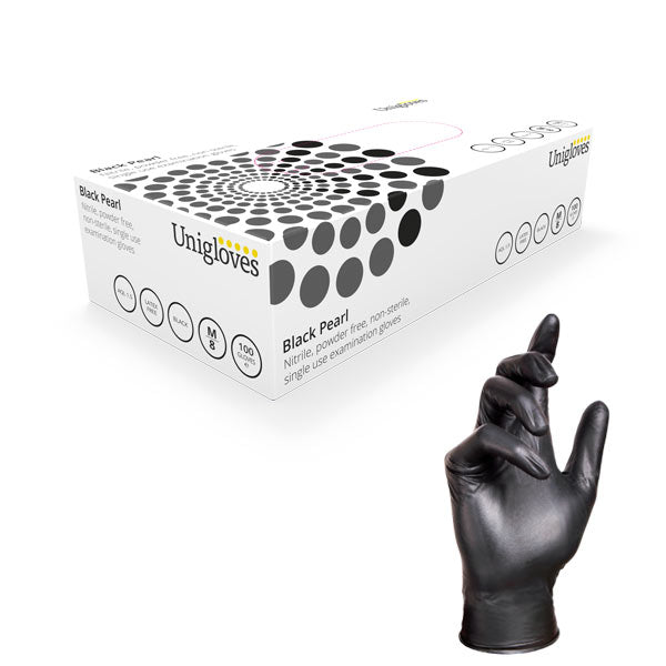 UNIGLOVES Black Pearl Nitrile Gloves (Box Of 100)