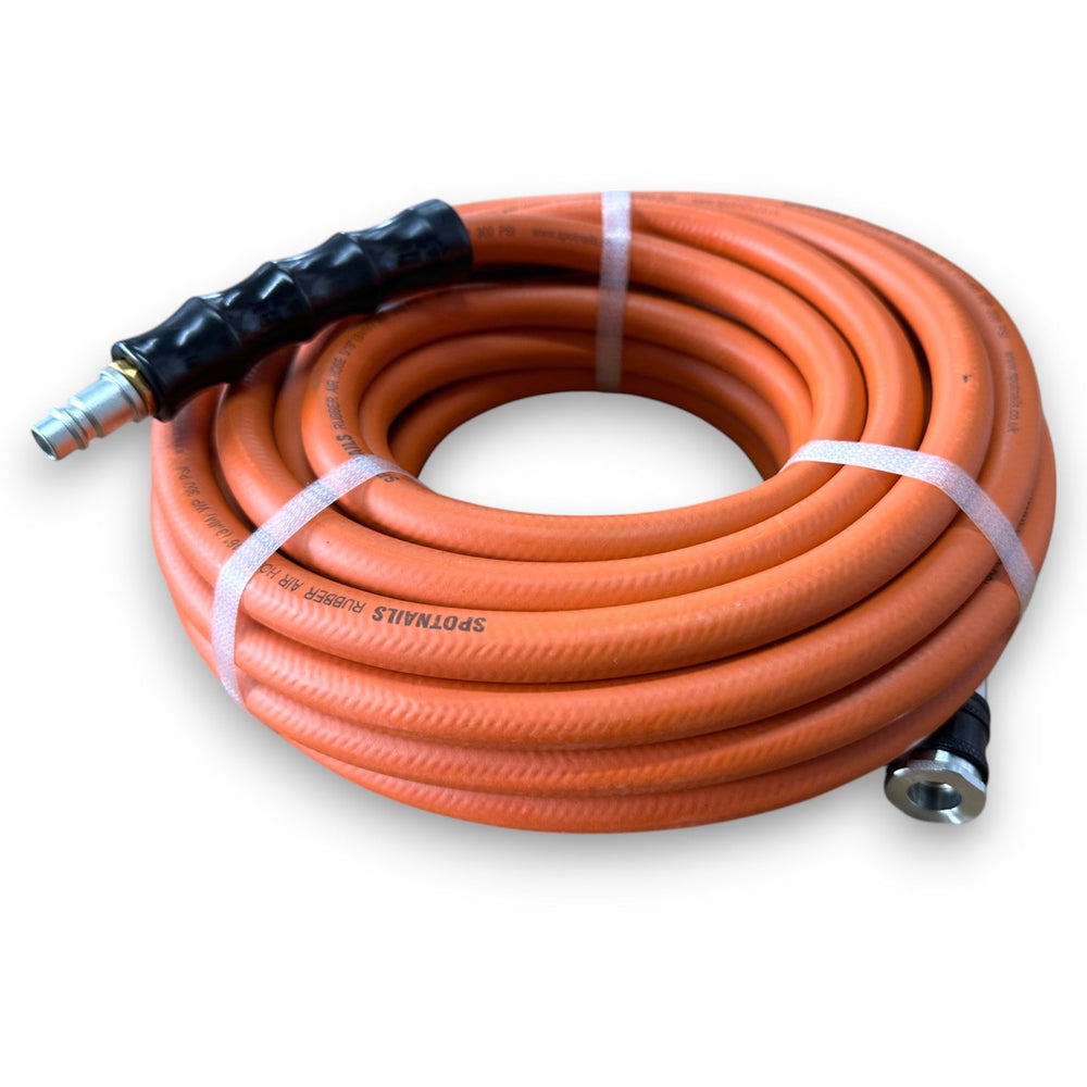 The Spotnails coil nailer flooring kit, Comes complete with the Spotnails SFN19 Flooring Coil Nailer, Spotnails SFC240 Low Noise Compressor 240v (2024 Model), and 10 metre air line hose.