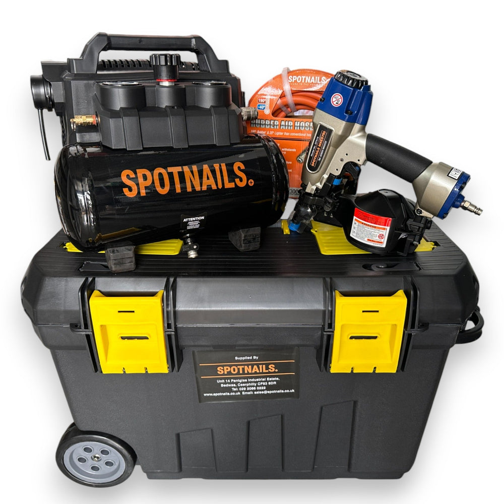 Spotnails SFN19 Coil Nailer & SFC240 Low Noise Compressor Kit (In wheeled Box)