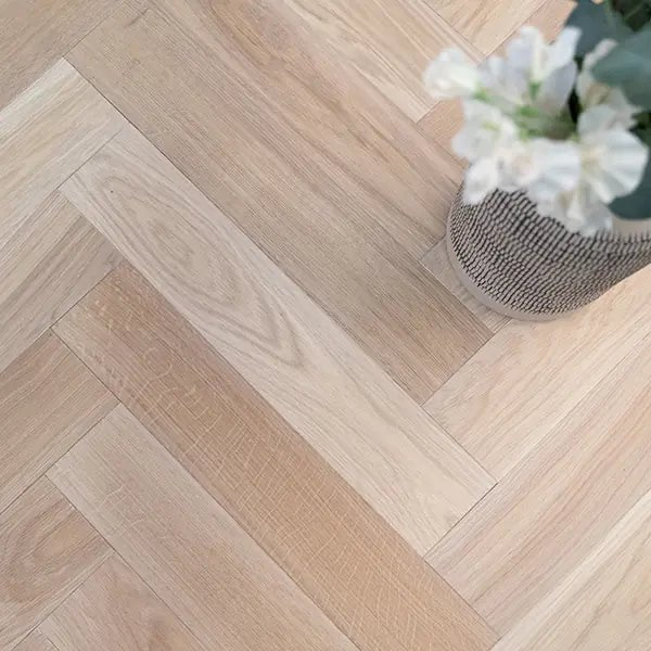 Staki is a long established flooring producer situated in Lithuania. All products are made using a European top layer adhered to a birch plywood base. Distinct pattern created with 500 x 100mm 15mm rectangular engineered boards. Decorating with shades of white seems to transcend trends always looking modern and relevant. A pale white floor can reflect a lot of natural light into a room, making a small room look bigger and a dark room look brighter.