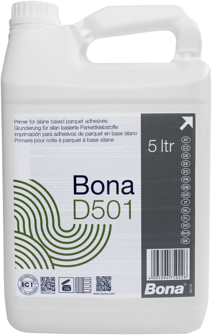 A primer designed for use over absorbent and non-absorbent substrates (with the exception of magnesium industrial floors) and for chipboard panels. All Bona silane adhesives can be applied over D501 after just one hour.A primer designed for use over absorbent and non-absorbent substrates (with the exception of magnesium industrial floors) and for chipboard panels. All Bona silane adhesives can be applied over D501 after just one hour.